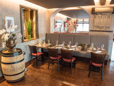 Ein gemütlicher Gastraum voller Genuss und charaktervollem Ambiente für bis zu 70 zufriedene Gäste.